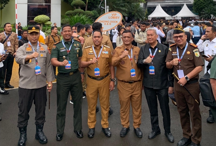 Bupati Wajo Andi Rosman dan wakilnya dr Baso Rahmanuddin serta unsur Forkopimda Wajo saat hadiri Rapat Koordinasi Nasional (Rakornas) Pemerintah Pusat dan Daerah Tahun 2026 digelar Kementerian Dalam Negeri (Kemendagri) di Sentul International Convention Center (SICC), Kabupaten Bogor, Senin (2/2/2026).